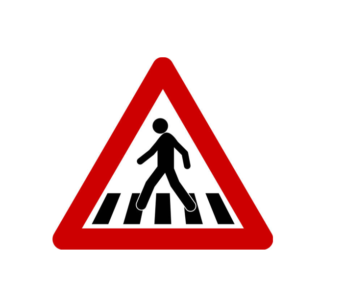 PEDESTRIAN CROSSING - Watch for pedestrians. Slow down and give way to people crossing the road