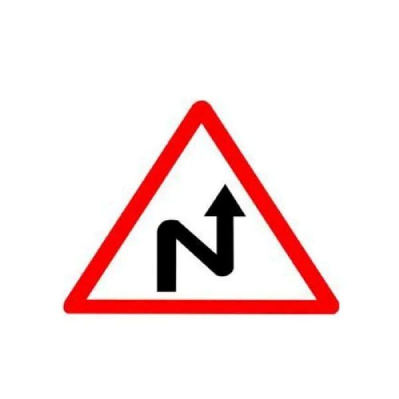 REVERSE BEND - The road curves sharply to the right and then to the left. Reduce speed and proceed