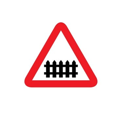 TRAIN TRACK AHEAD - Caution! Railway crossing ahead. Slow down and be prepared to stop